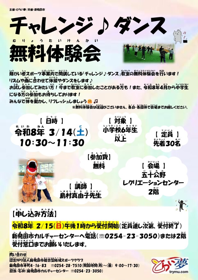 「チャレンジ♪ダンス」無料体験会の開催について